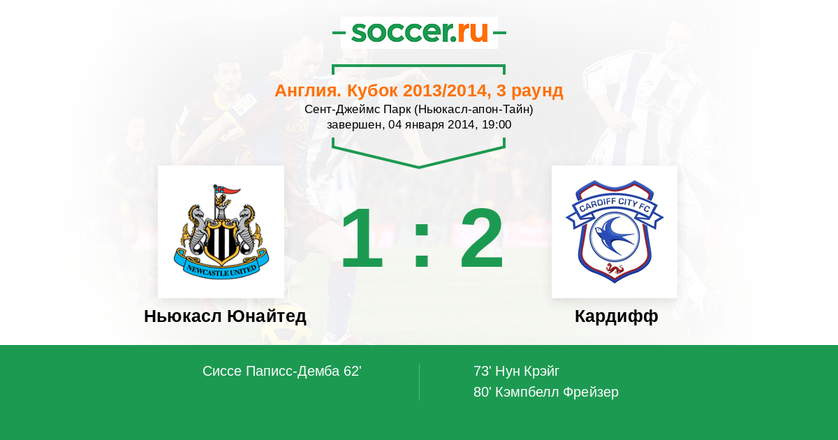 Протокол матча Ньюкасл Юнайтед против Кардифф