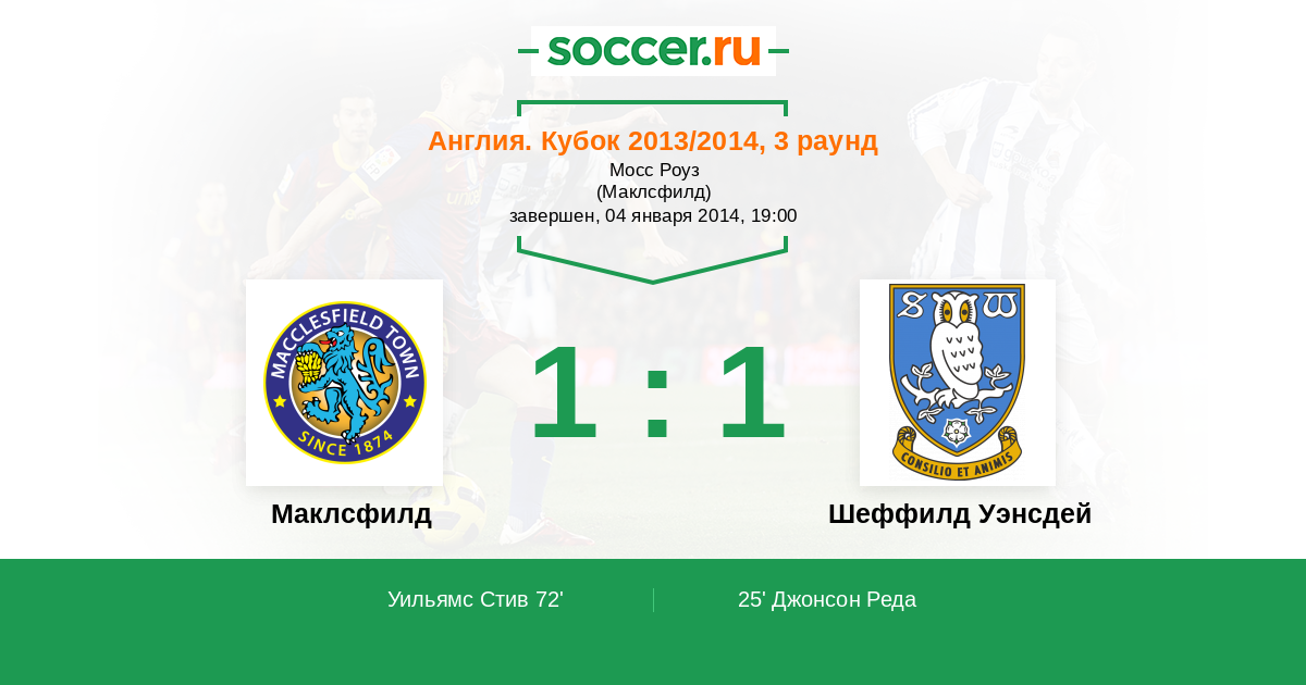 Протокол матча Маклсфилд против Шеффилд Уэнсдей