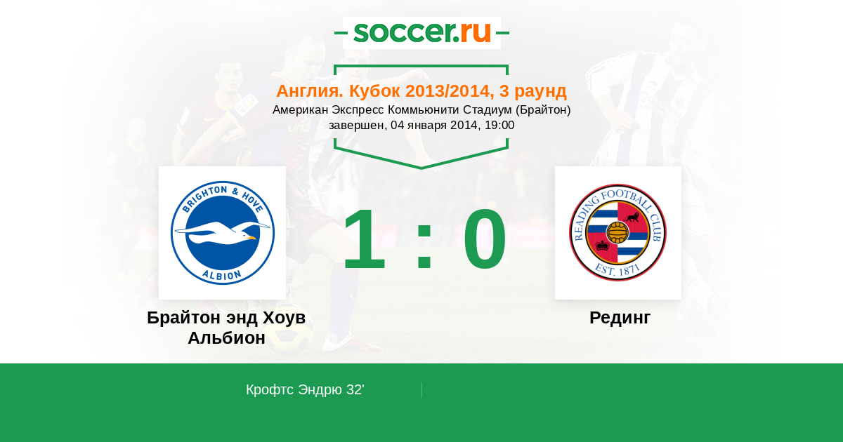 Протокол матча Брайтон энд Хоув Альбион против Рединг