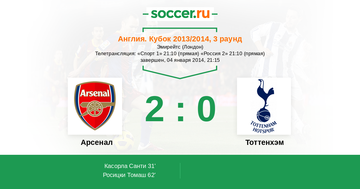 Протокол матча Арсенал против Тоттенхэм