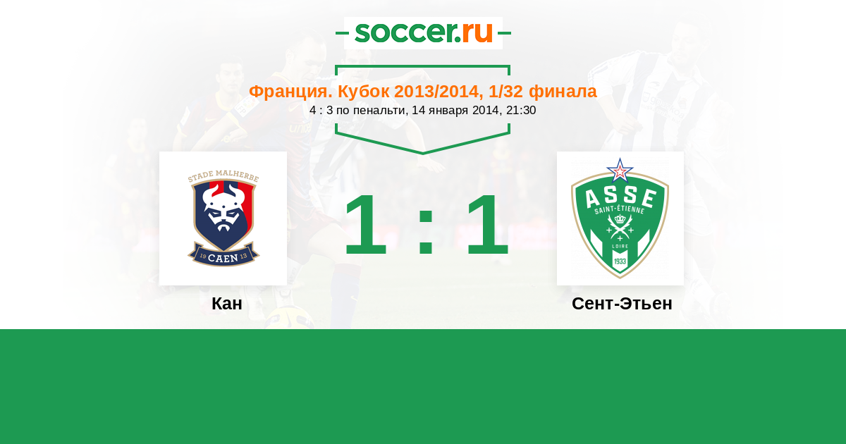 Франция. Кубок 06.01.2013 Кан Логотип футбольный клуб Кан 2:3 Логотип футбольный клуб Сент-Этьен Сент-Этьен