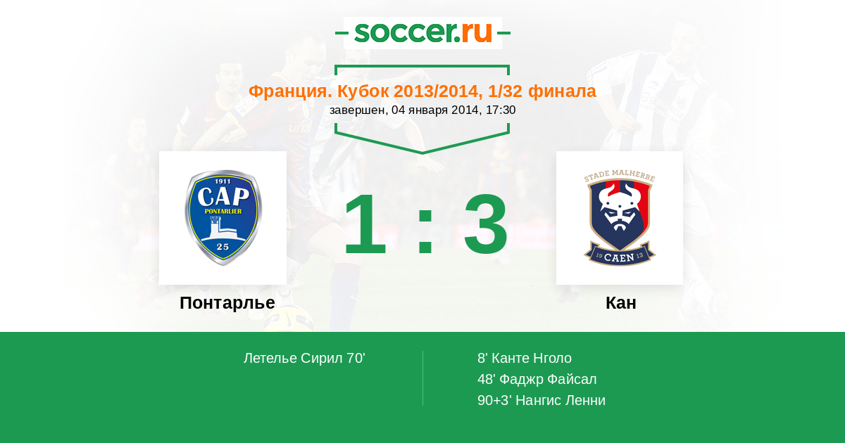 Протокол матча Понтарлье против Кан