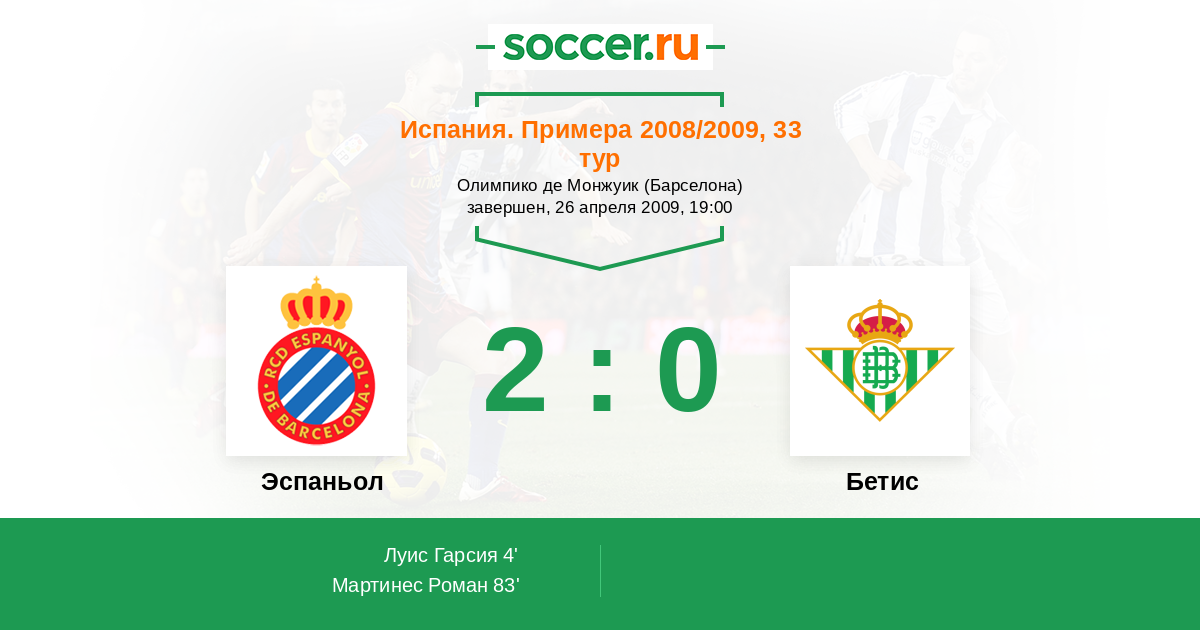 Протокол матча Эспаньол против Бетис
