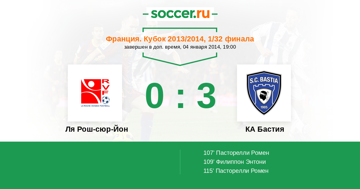 Протокол матча Ля Рош-сюр-Йон против КА Бастия