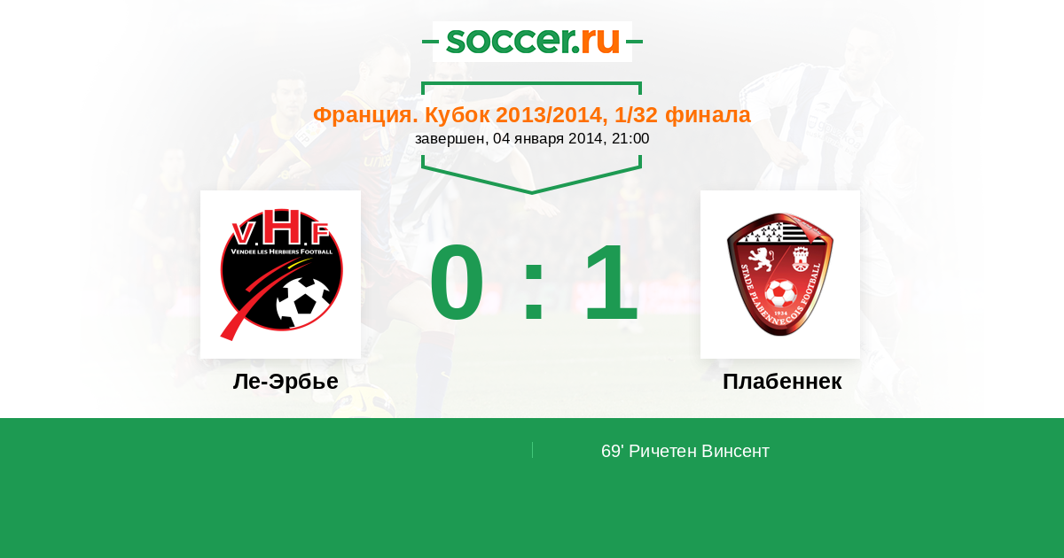 Протокол матча Ле-Эрбье против Плабеннек