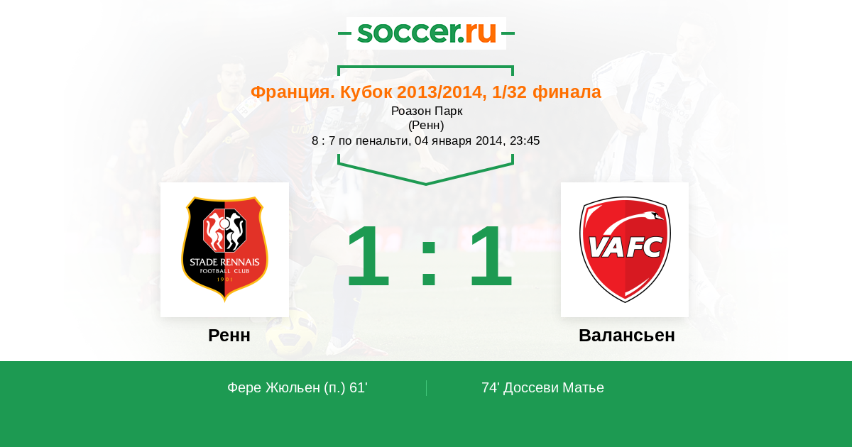 Протокол матча Ренн против Валансьен