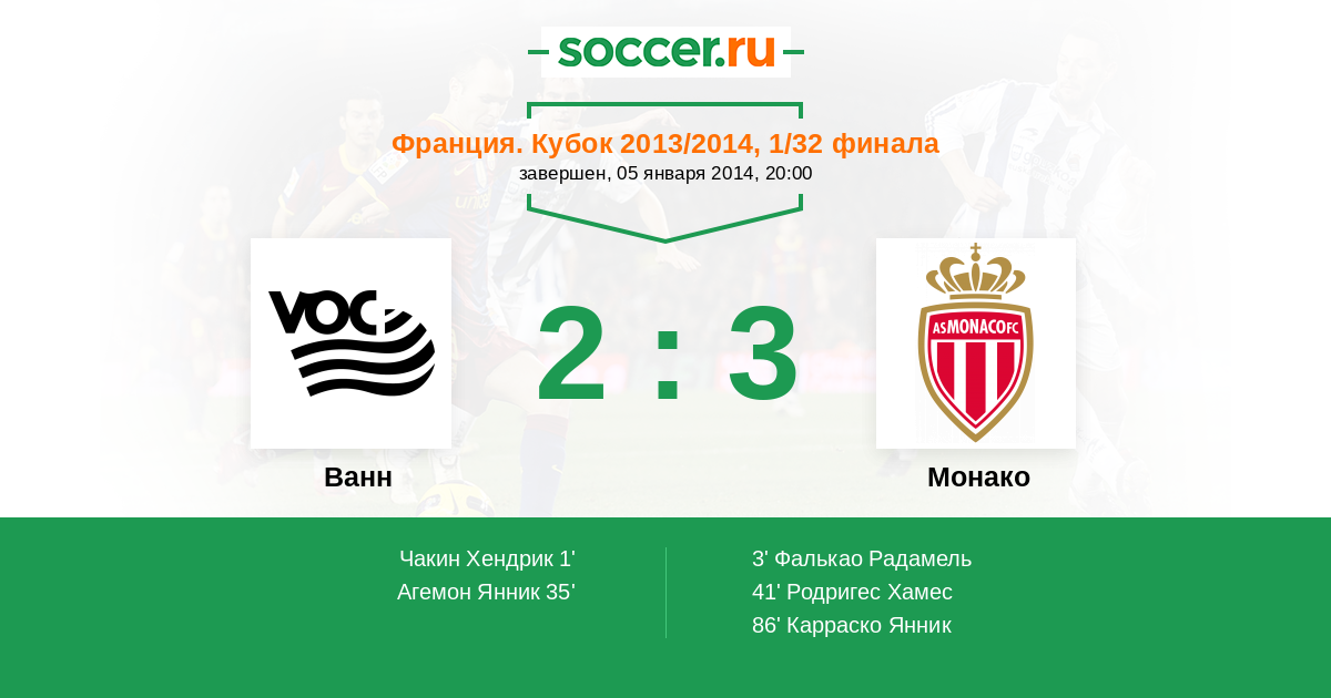 Протокол матча Ванн против Монако