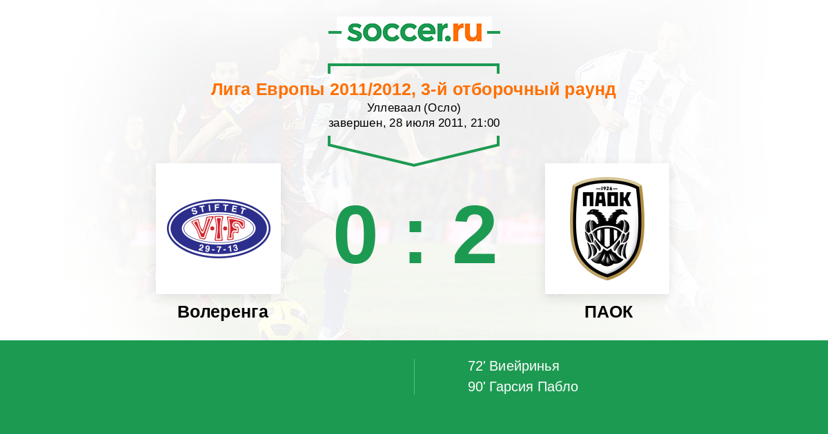 Протокол матча Волеренга против ПАОК