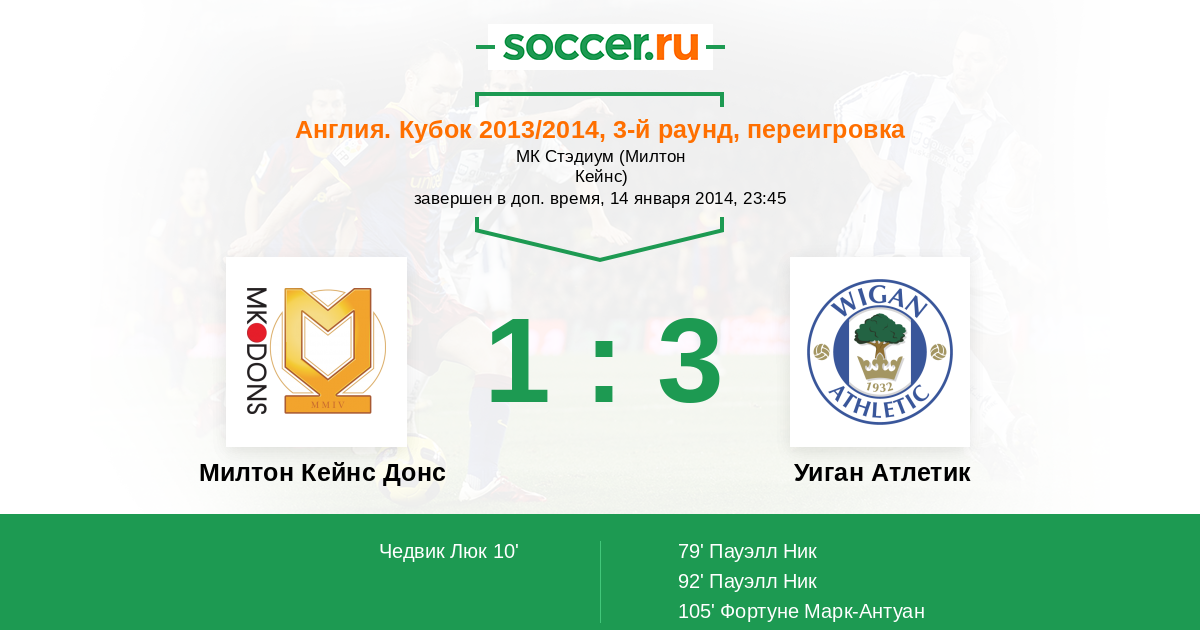 Протокол матча Милтон Кейнс Донс против Уиган Атлетик