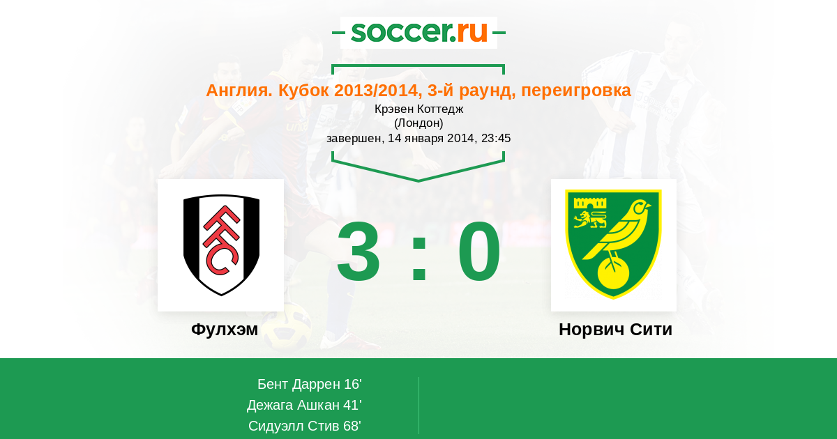 Протокол матча Фулхэм против Норвич Сити