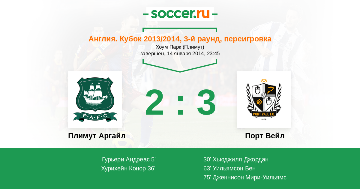 Протокол матча Плимут Аргайл против Порт Вейл
