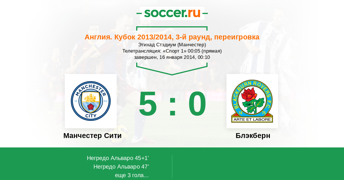 Протокол матча Манчестер Сити против Блэкберн