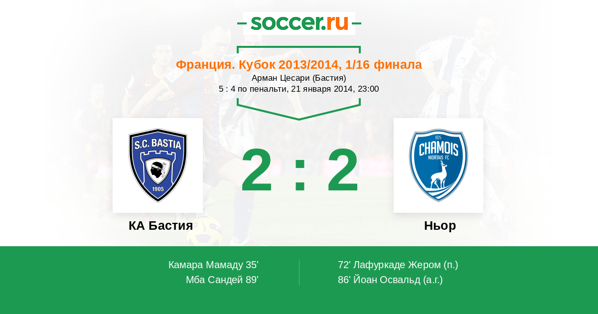 Протокол матча КА Бастия против Ньор