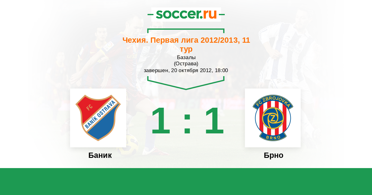 Чехия. Первая Лига 26.08.2013 Баник Логотип футбольный клуб Баник (Острава) 2:1 Логотип футбольный клуб Брно Брно