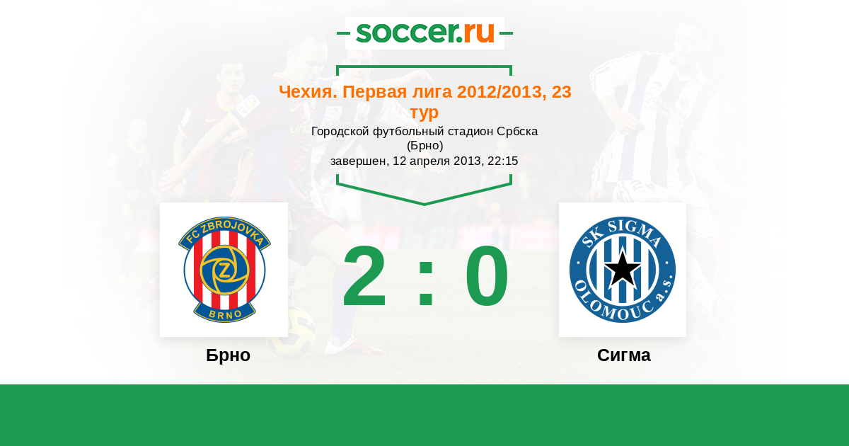 Чехия. Первая Лига 14.04.2014 Брно Логотип футбольный клуб Брно 2:0 Логотип футбольный клуб Сигма (Оломоуц) Сигма