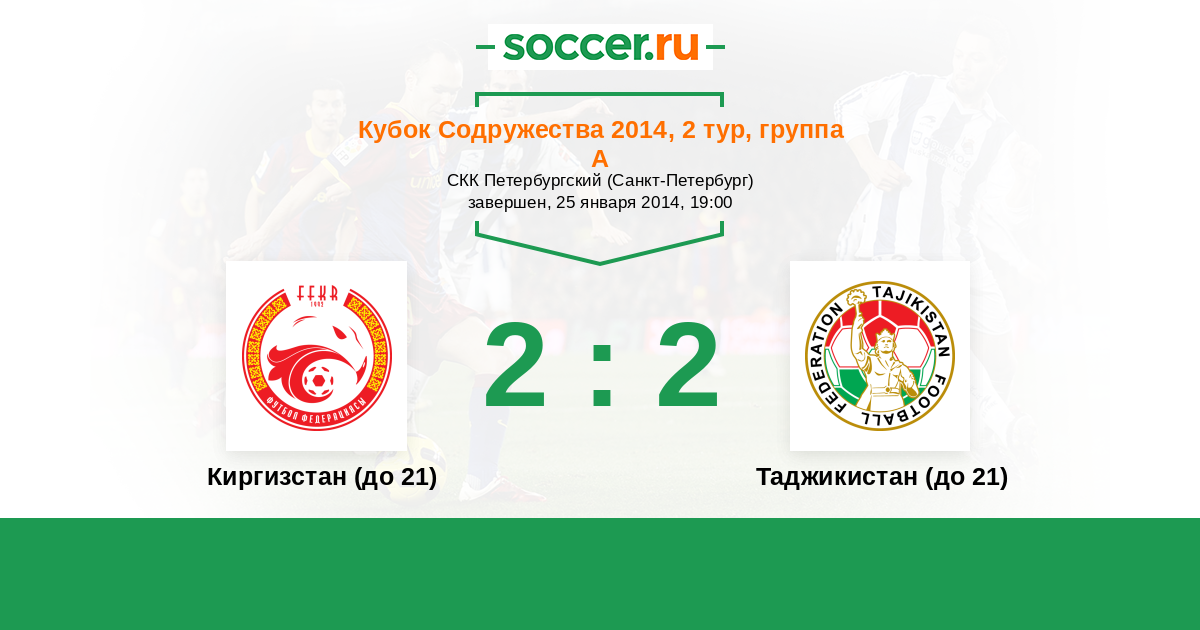 Кубок Содружества 01.02.2014 Киргизстан (до 21) Логотип Киргизстан (до 21) 1:1 (2:4) Логотип Таджикистан (до 21) Таджикистан (до 21)