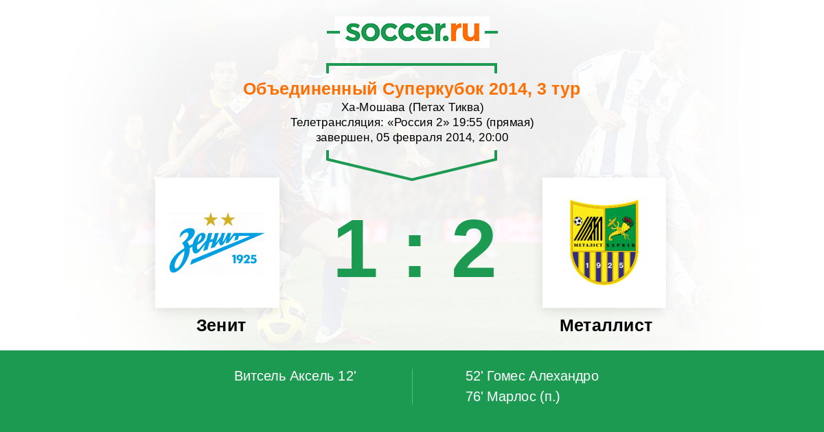 12' (1:0) Гол после углового Витсель Аксель (Файзулин Виктор)
