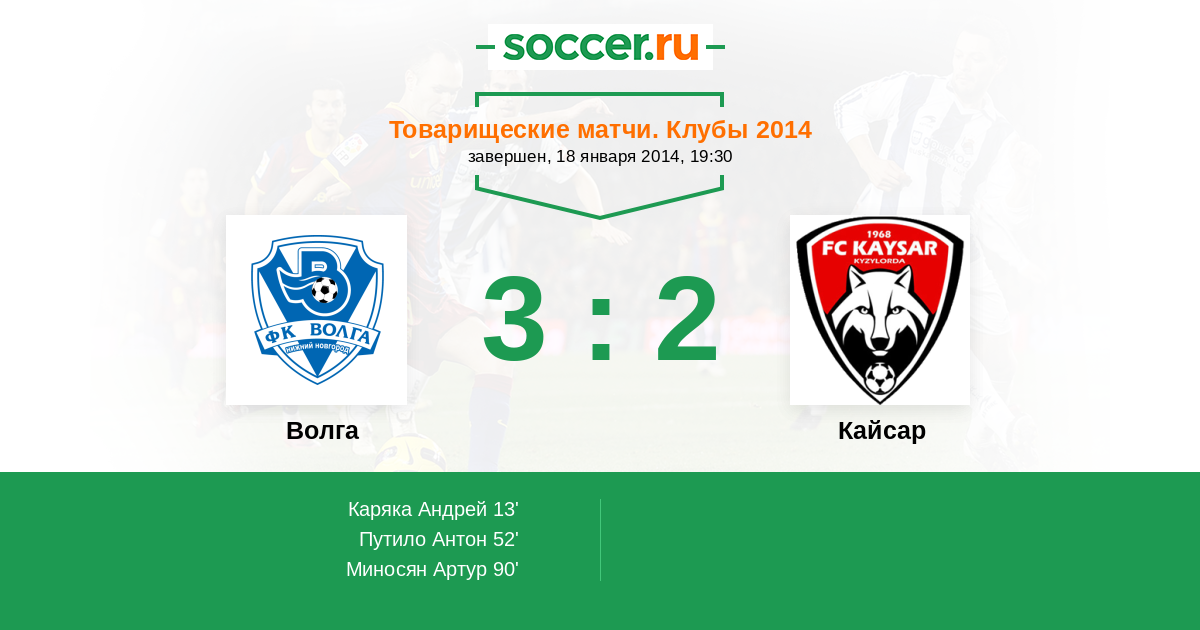 Протокол матча Волга против Кайсар