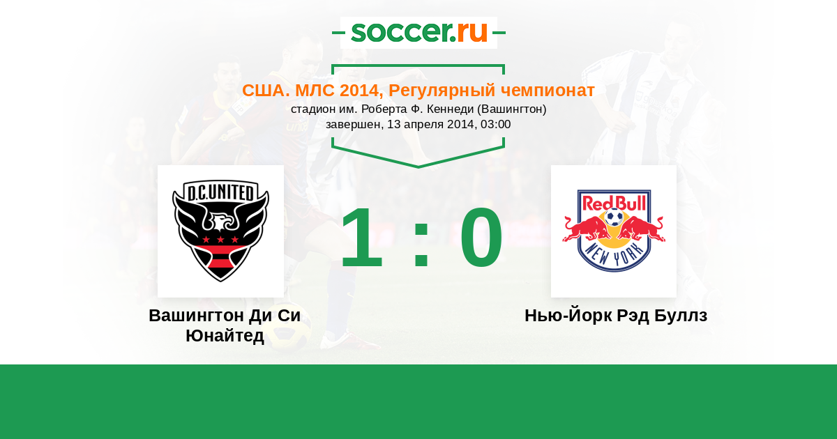 США. МЛС 14.04.2013 Вашингтон Ди Си Юнайтед Логотип футбольный клуб Вашингтон Ди Си Юнайтед 0:2 Логотип футбольный клуб Нью-Йорк Рэд Буллз Нью-Йорк Рэд Буллз