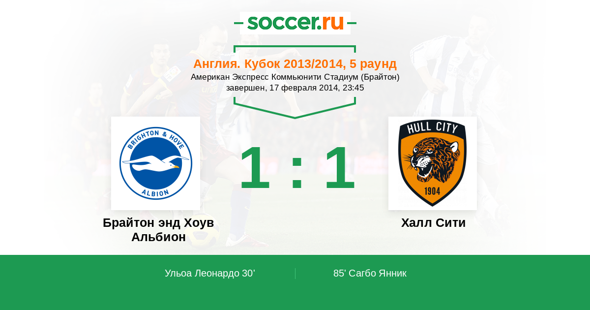 Протокол матча Брайтон энд Хоув Альбион против Халл Сити