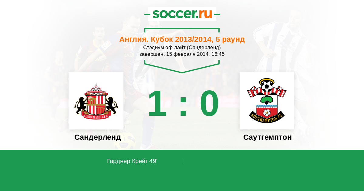 Протокол матча Сандерленд против Саутгемптон