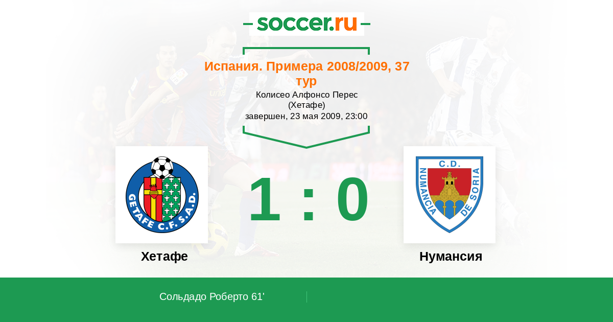 Протокол матча Хетафе против Нумансия