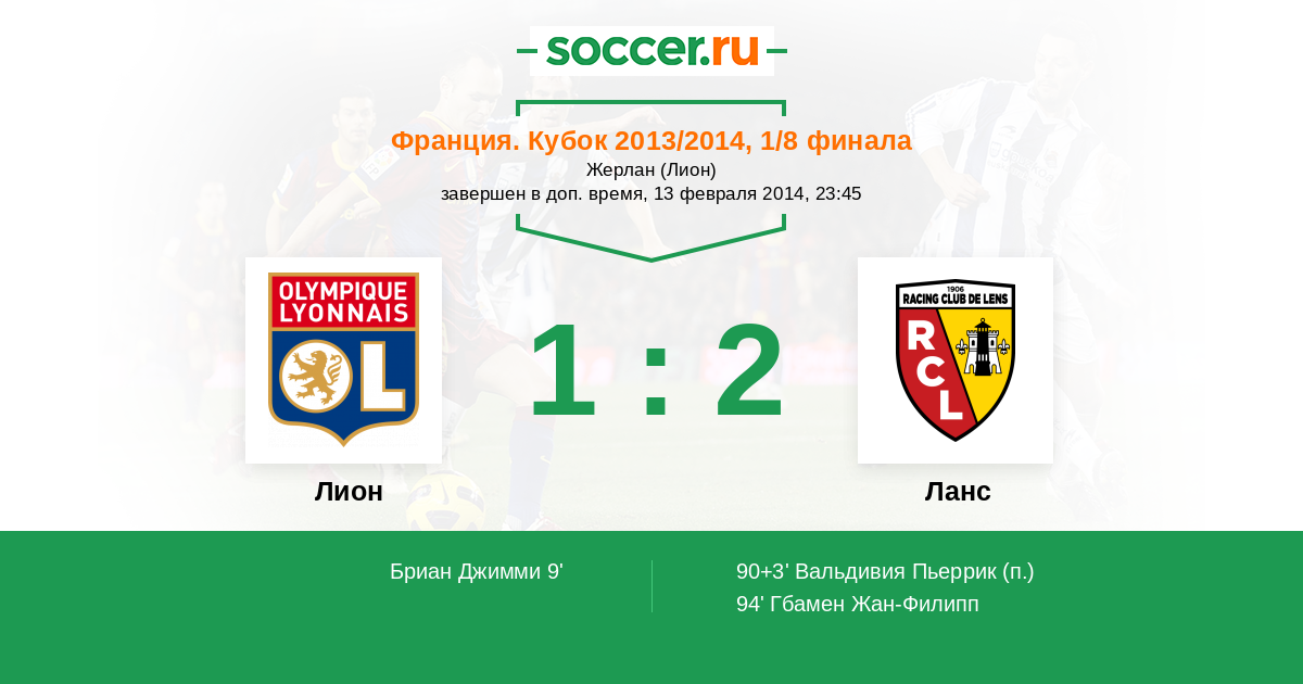 Протокол матча Лион против Ланс