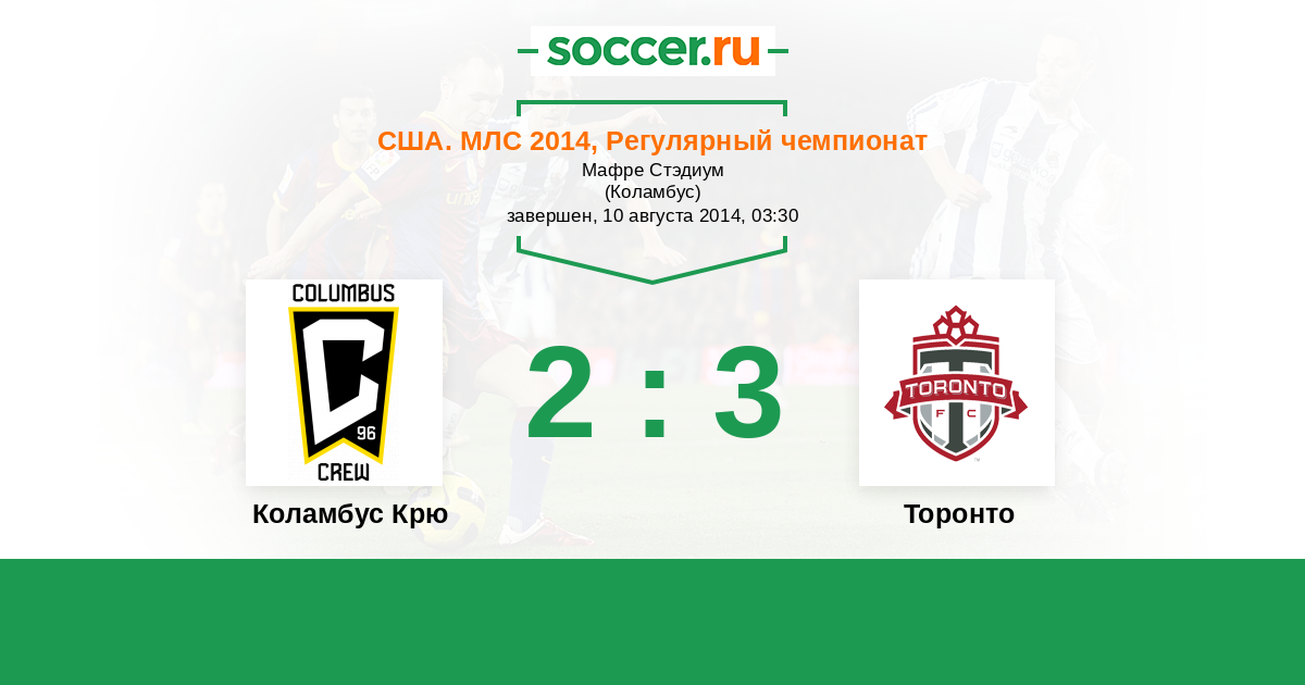 США. МЛС 01.06.2014 Торонто Логотип футбольный клуб Торонто 3:2 Логотип футбольный клуб Коламбус Крю Коламбус Крю