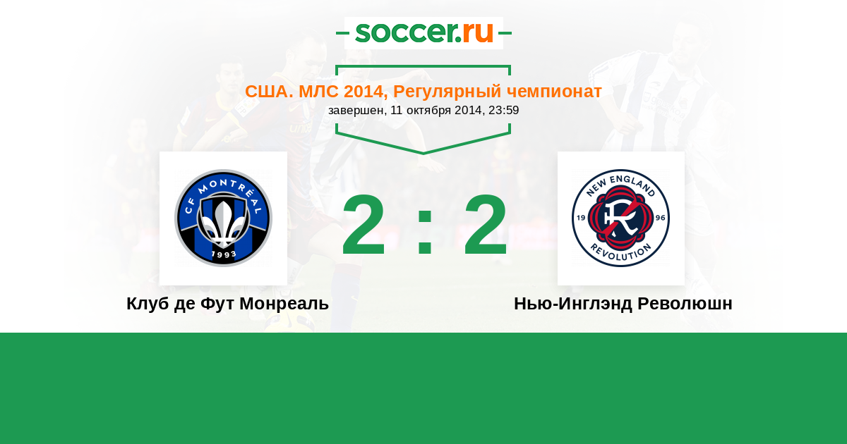 США. МЛС 01.06.2014 Клуб де Фут Монреаль Логотип футбольный клуб Клуб де Фут Монреаль 2:0 Логотип футбольный клуб Нью-Инглэнд Революшн (Фоксборо) Нью-Инглэнд Революшн