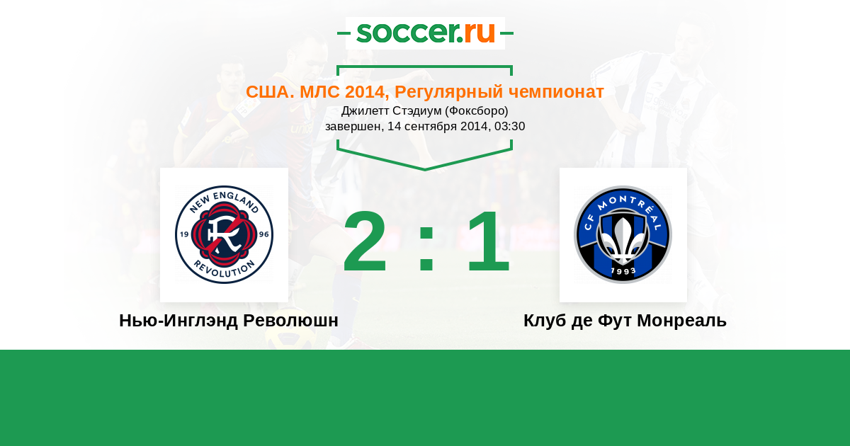 США. МЛС 01.06.2014 Клуб де Фут Монреаль Логотип футбольный клуб Клуб де Фут Монреаль 2:0 Логотип футбольный клуб Нью-Инглэнд Революшн (Фоксборо) Нью-Инглэнд Революшн