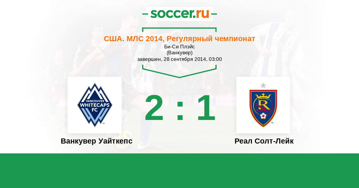 США. МЛС 29.09.2013 Ванкувер Уайткепс Логотип футбольный клуб Ванкувер Уайткепс 0:1 Логотип футбольный клуб Реал Солт-Лейк (Солт-Лейк-Сити) Реал Солт-Лейк