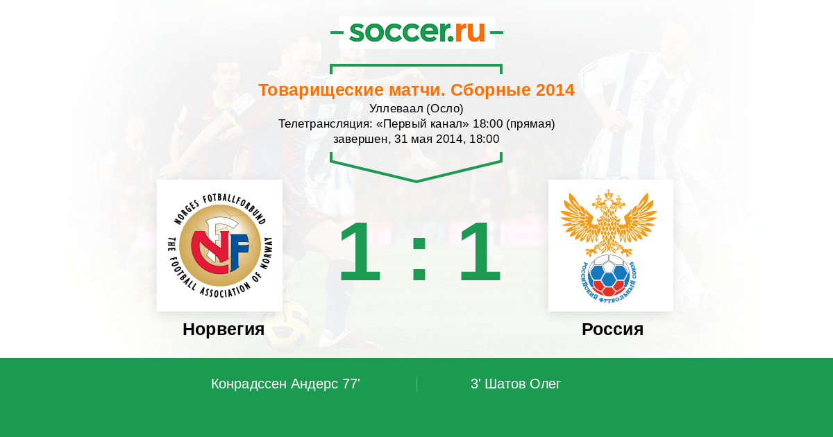77' (1:1) Конрадссен Андерс (23) (Педерсен Мортен Гамст (11))