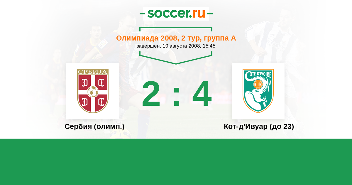 Матч Сербия (олимп.) против Кот-д'Ивуар (до 23)