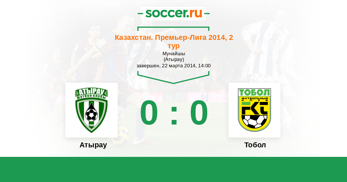 Казахстан. Премьер-лига 18.05.2014 Тобол Логотип футбольный клуб Тобол (Костанай) 0:0 Логотип футбольный клуб Атырау Атырау