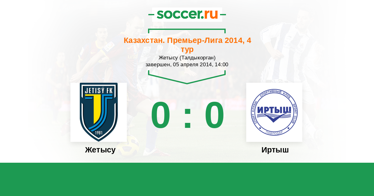 Казахстан. Премьер-лига 20.04.2013 Жетысу Логотип футбольный клуб Жетысу (Талдыкорган) 1:0 Логотип футбольный клуб Иртыш (Павлодар) Иртыш