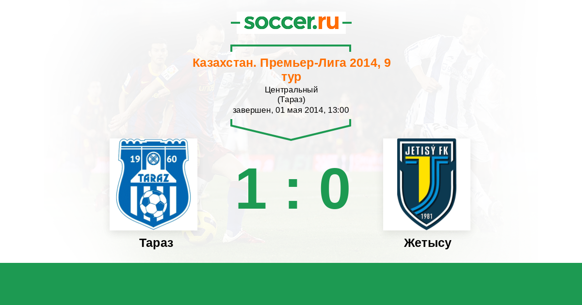 Казахстан. Премьер-лига 05.07.2014 Жетысу Логотип футбольный клуб Жетысу (Талдыкорган) 1:0 Логотип футбольный клуб Тараз Тараз