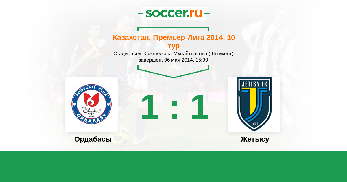 Казахстан. Премьер-лига 12.07.2014 Жетысу Логотип футбольный клуб Жетысу (Талдыкорган) 0:1 Логотип футбольный клуб Ордабасы (Шымкент) Ордабасы