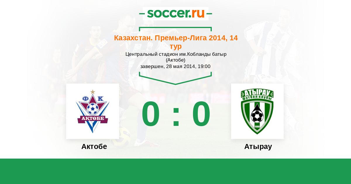 Казахстан. Премьер-лига 05.04.2014 Атырау Логотип футбольный клуб Атырау 0:0 Логотип футбольный клуб Актобе Актобе