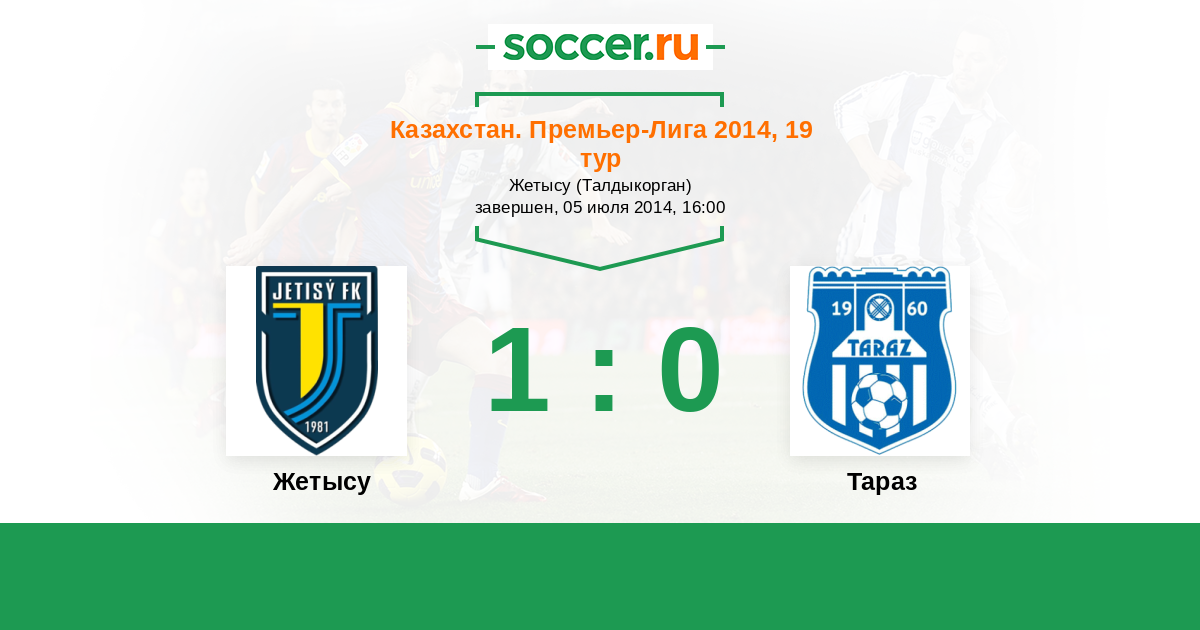 Казахстан. Премьер-лига 20.07.2013 Жетысу Логотип футбольный клуб Жетысу (Талдыкорган) 1:1 Логотип футбольный клуб Тараз Тараз