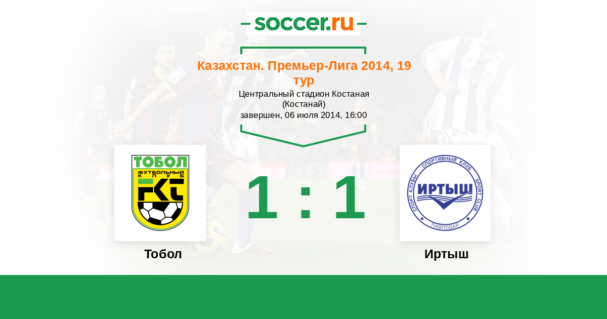 Казахстан. Премьер-лига 24.06.2012 Тобол Логотип футбольный клуб Тобол (Костанай) 2:2 Логотип футбольный клуб Иртыш (Павлодар) Иртыш