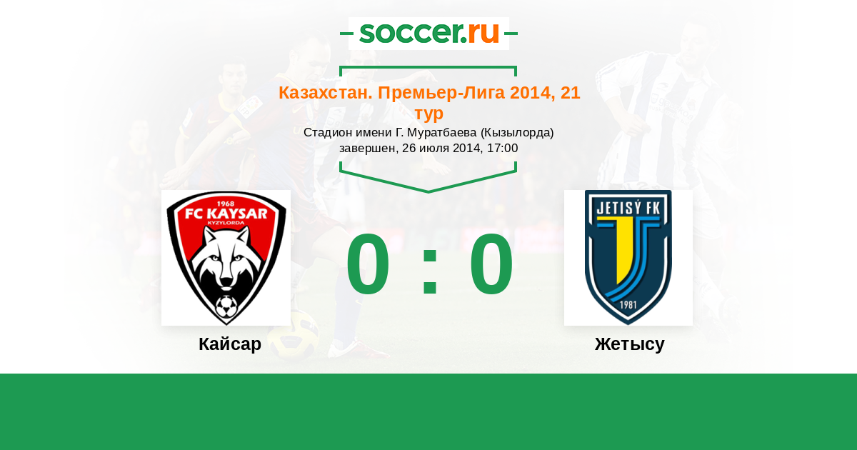 Казахстан. Премьер-лига 26.07.2015 Жетысу Логотип футбольный клуб Жетысу (Талдыкорган) 2:1 Логотип футбольный клуб Кайсар (Кызылорда) Кайсар