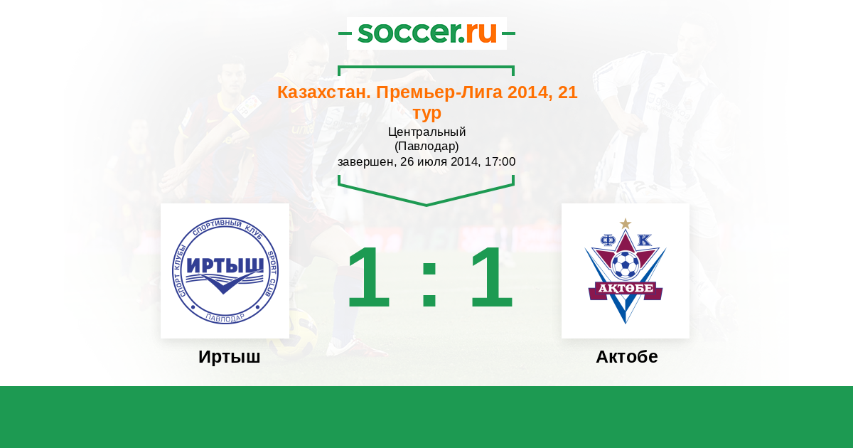 Казахстан. Премьер-лига 21.10.2017 Иртыш Логотип футбольный клуб Иртыш (Павлодар) 1:1 Логотип футбольный клуб Актобе Актобе