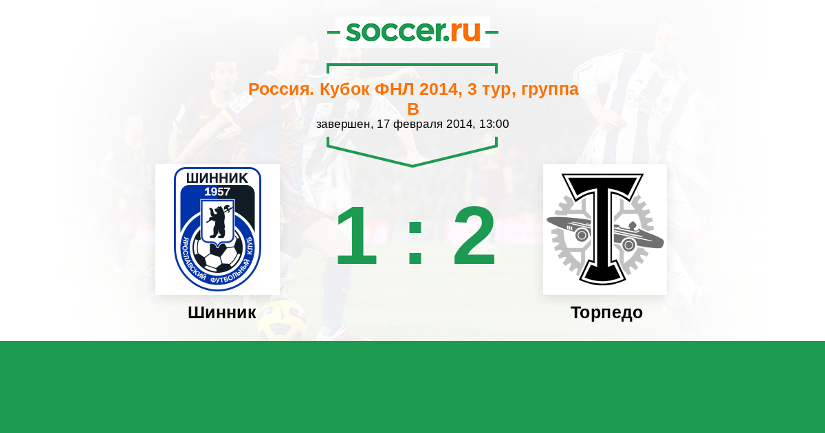 Россия. Первая лига 12.11.2012 Шинник Логотип футбольный клуб Шинник (Ярославль) 3:2 Логотип футбольный клуб Торпедо (Москва) Торпедо