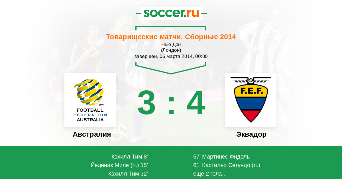 Протокол матча Австралия против Эквадор