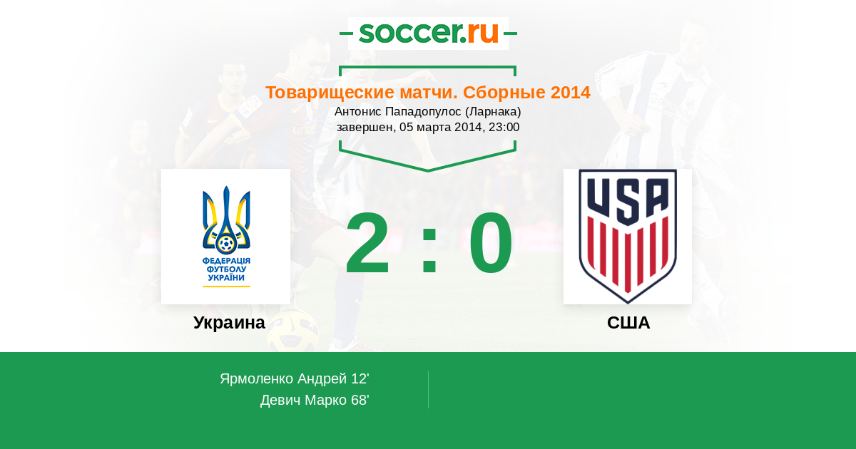 Протокол матча Украина против США