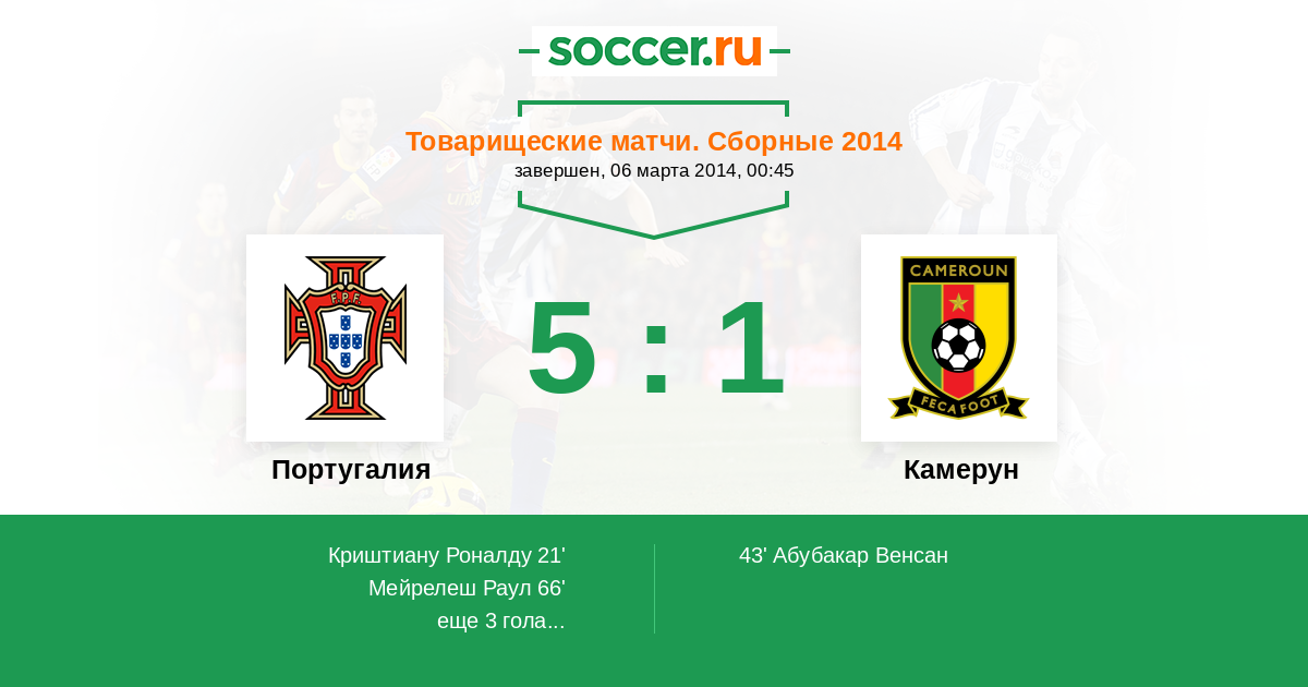 Протокол матча Португалия против Камерун