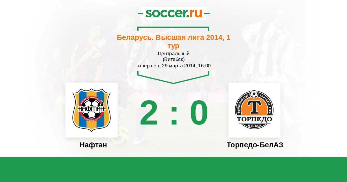 Беларусь. Высшая лига 11.06.2014 Торпедо-БелАЗ Логотип футбольный клуб Торпедо-БелАЗ (Жодино) 0:1 Логотип футбольный клуб Нафтан (Новополоцк) Нафтан