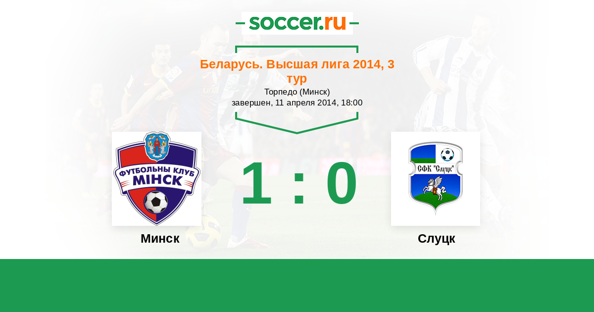 Беларусь. Высшая лига 22.06.2014 Слуцк Логотип футбольный клуб Слуцк 2:0 Логотип футбольный клуб Минск Минск