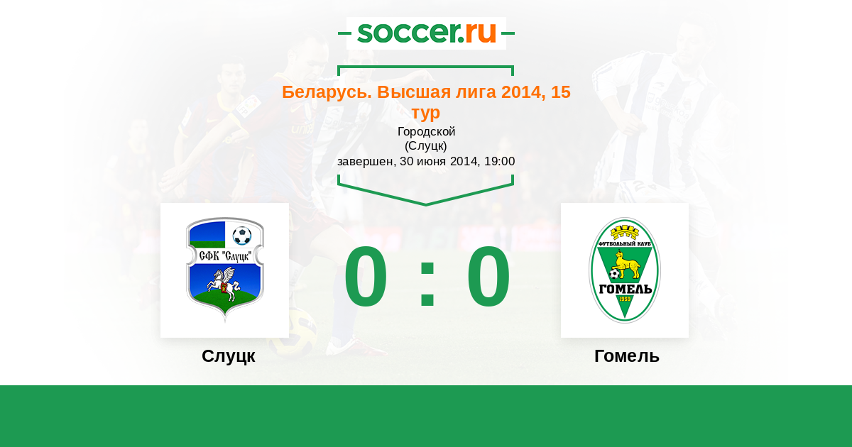 Беларусь. Высшая лига 21.06.2015 Слуцк Логотип футбольный клуб Слуцк 0:0 Логотип футбольный клуб Гомель Гомель