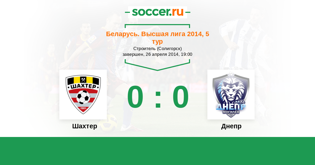 Беларусь. Высшая лига 04.07.2014 Днепр Логотип футбольный клуб Днепр (Могилев) 0:1 Логотип футбольный клуб Шахтер (Солигорск) Шахтер